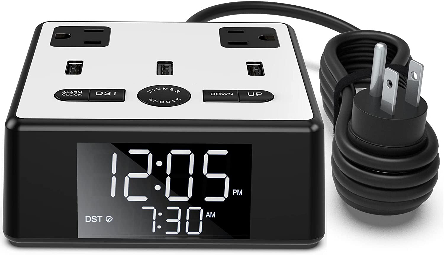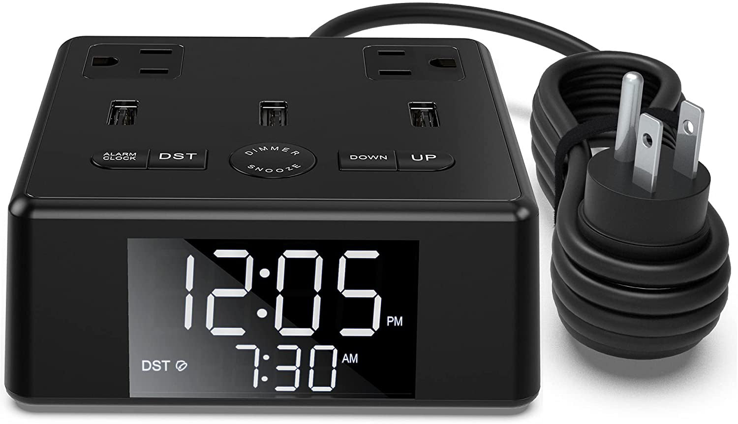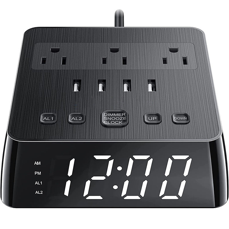 LED Alarm Clock with USB and Power Socket Outlet